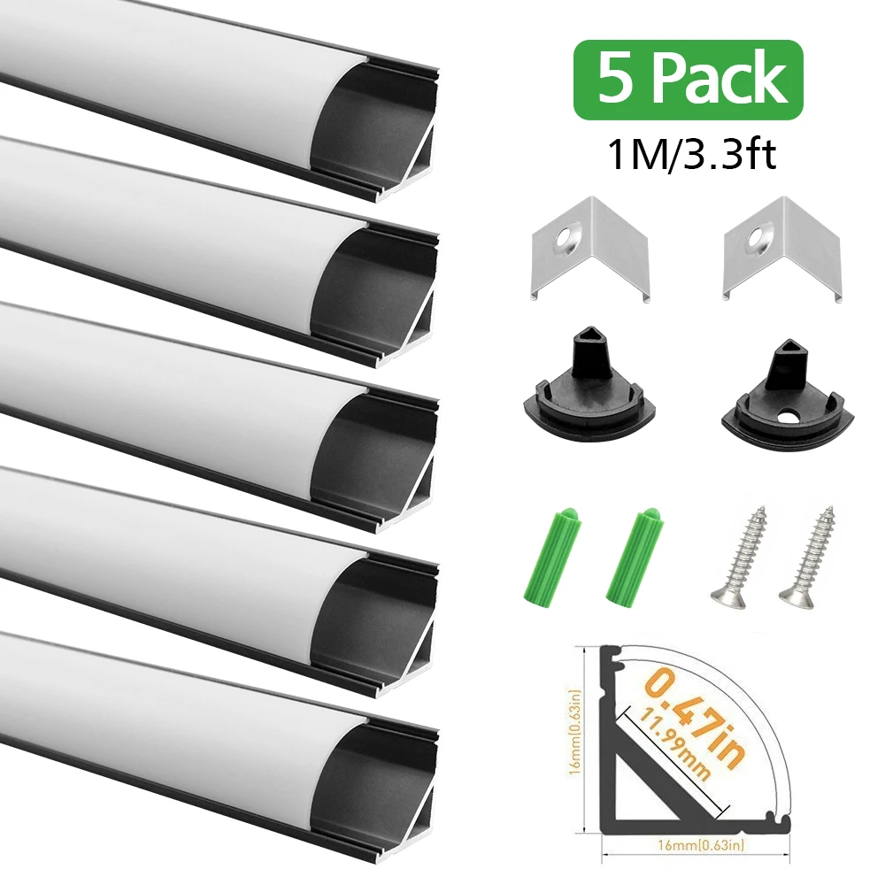 Special Offer 10Pack 3.3ft/1M V02 Zwart Zilver Profiel V-Vorm Led Aluminium Profiel W/Melkachtige Witte Cover Voor 12Mm Led Strip Licht Installatie Discount (25%OFF) Today!