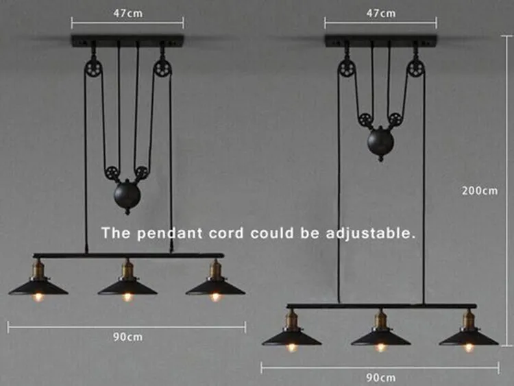 Product Name: Vintage Rh Loft Industriële Amerikaanse Land Tillen Katrol Hanglampen Verstelbare Draad Lampen Intrekbare Bar Decor Verlichting