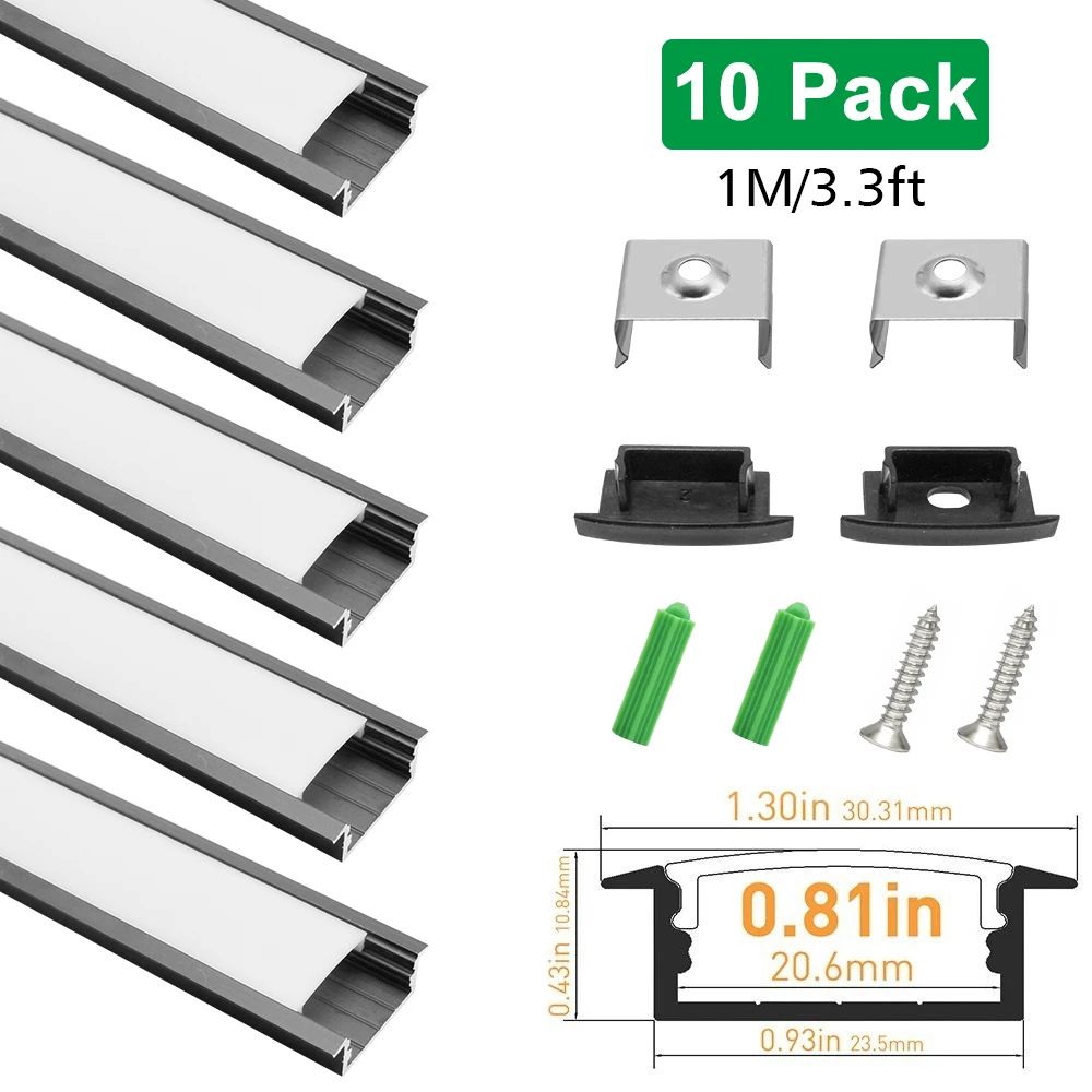Special Offer 10Sets 1M U03 Zilver Zwart Aluminium Profiel U-vorm Extrusie Met Melkachtige Witte Cover Voor 20Mm Brede Led Strip Licht Installatie Discount (20%OFF) Today!
