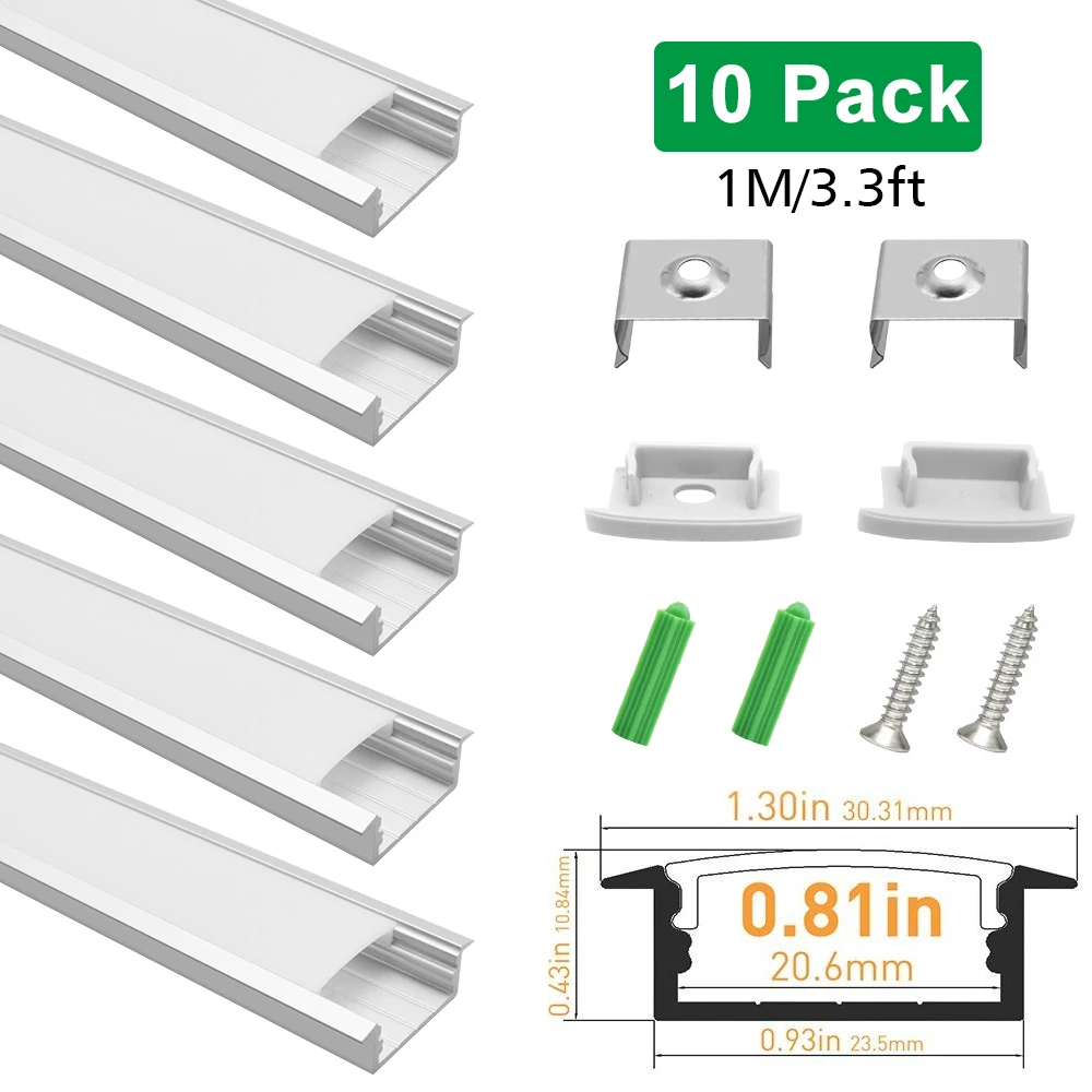 Product Name: 10Sets 1M U03 Zilver Zwart Aluminium Profiel U-vorm Extrusie Met Melkachtige Witte Cover Voor 20Mm Brede Led Strip Licht Installatie