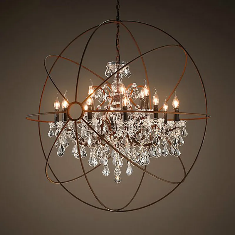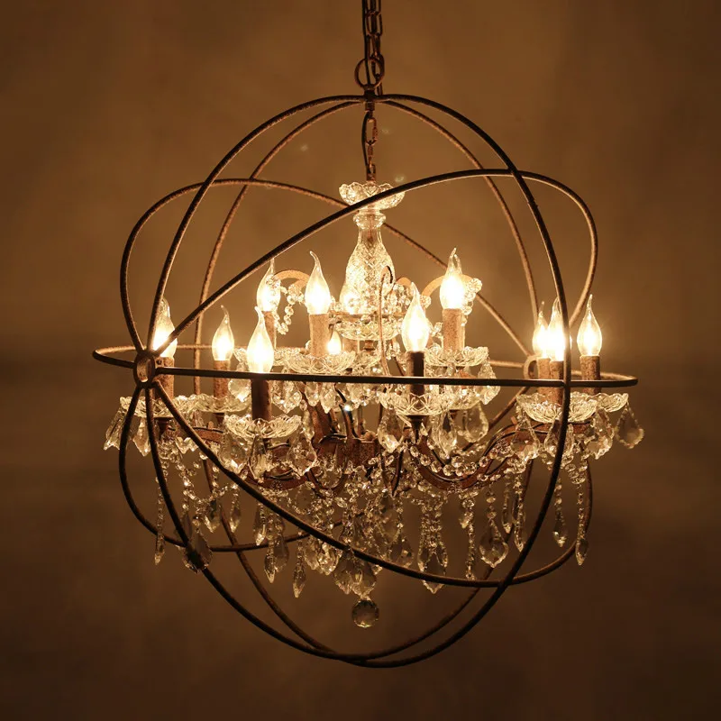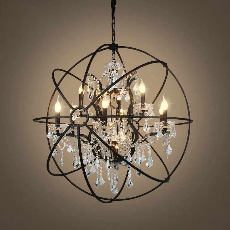 Product Name: Nordic Ijzeren Ketting Kooi Kristal Hanglampen Amerikaanse Zwarte Industriële Lamp Vintage Thuis Bar Opknoping Lichten Woonkamer Decor