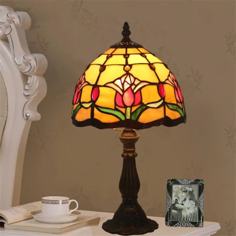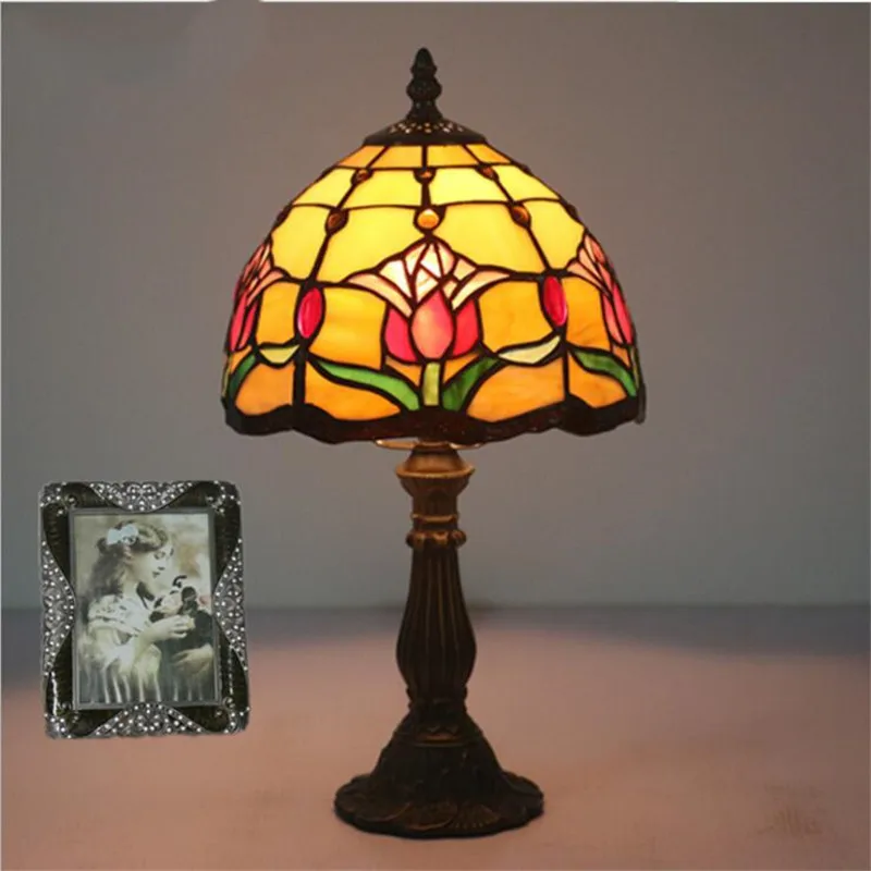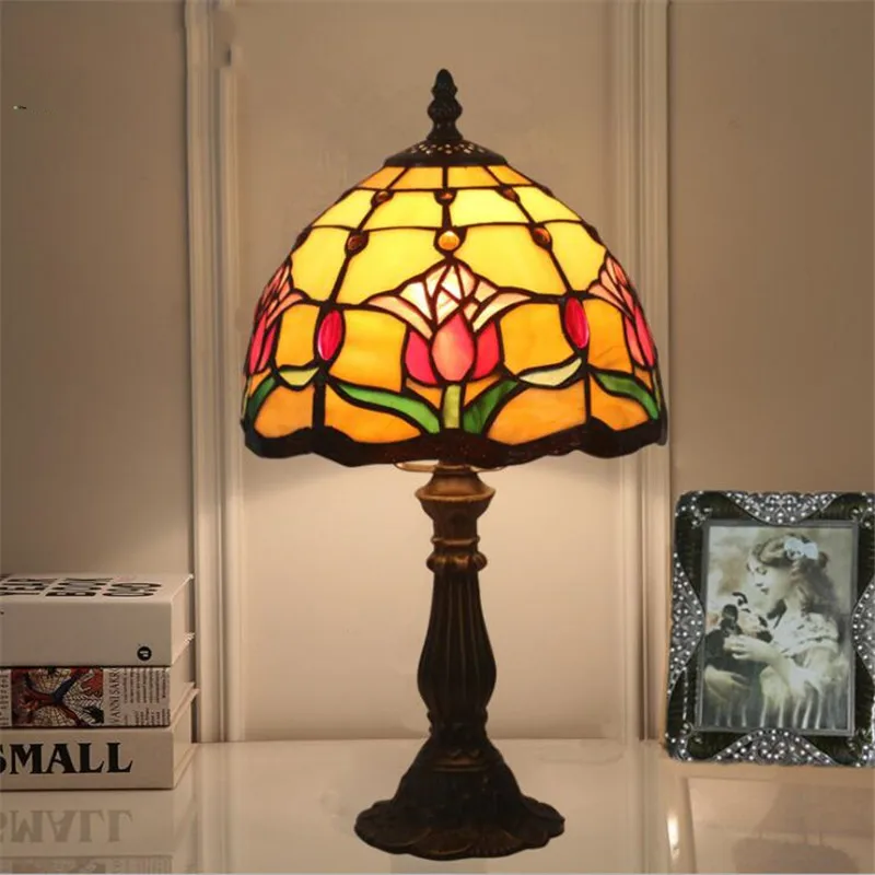 Special Offer 8 "romantische Vintage Tiffany Art Tulip Glazen Tafel Lamp Voor Foyer Bed Room Bar Appartement Glas Leeslamp H 38 Cm 1055 Discount (25%OFF) Today!