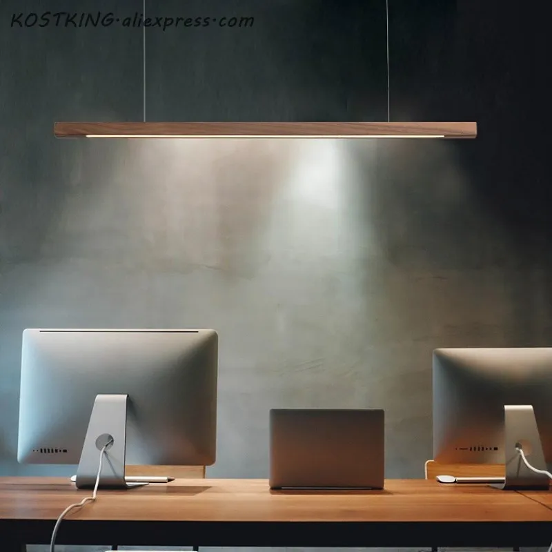 Product Name: KOSTKING Hout LED Talo Hanglamp Lange Bar Buis Schorsing Verlichting Kantoor Vergadering Eetkamer Hotel Villa Teller Licht