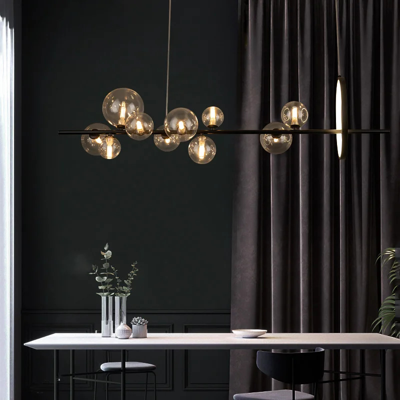 Product Name: Zwart Led Kroonluchter Helder Glazen Bal Moderne Lange Hanglamp Voor Eetkamer Bar Restaurant Koffiebar Kantoor Opknoping Licht