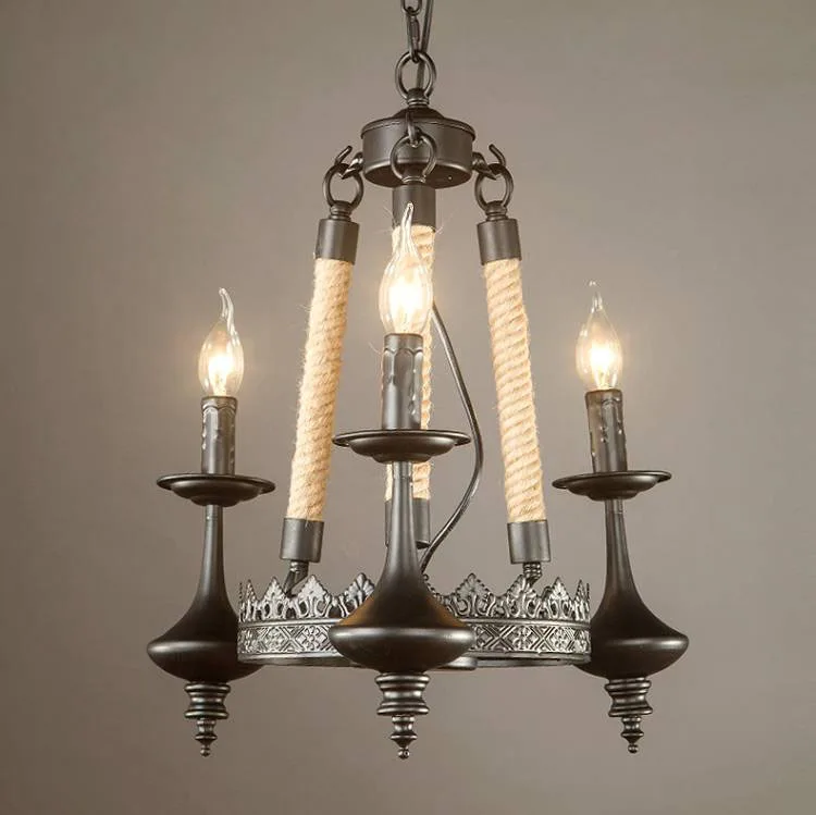 Product Name: Hennep Touw Ijzeren Zwarte Hanglamp, Ronde Droplight Met 3/6/8 Kaarsen E14 Led Warm Wit Licht Voor Cafe Retro Restaurant Bar