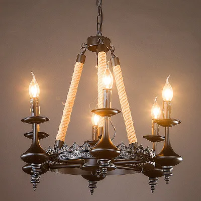 Special Offer Hennep Touw Ijzeren Zwarte Hanglamp, Ronde Droplight Met 3/6/8 Kaarsen E14 Led Warm Wit Licht Voor Cafe Retro Restaurant Bar Discount (20%OFF) Today!