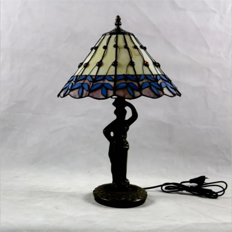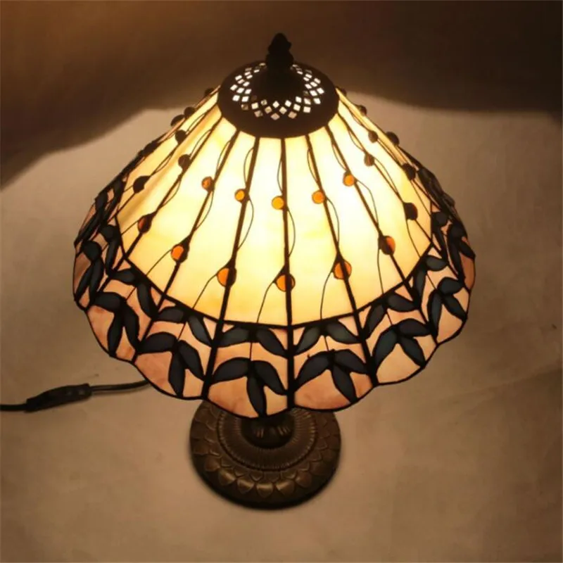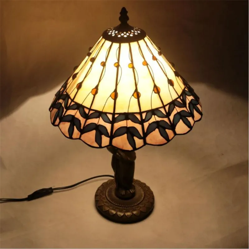 Product Name: 12 "Vintage Pastorale Tiffany Handgemaakte Glazen Tafel Lamp Voor Foyer Appartement Bar Bed Kamer Europese Lezen Verlichting H 45 Cm 1026