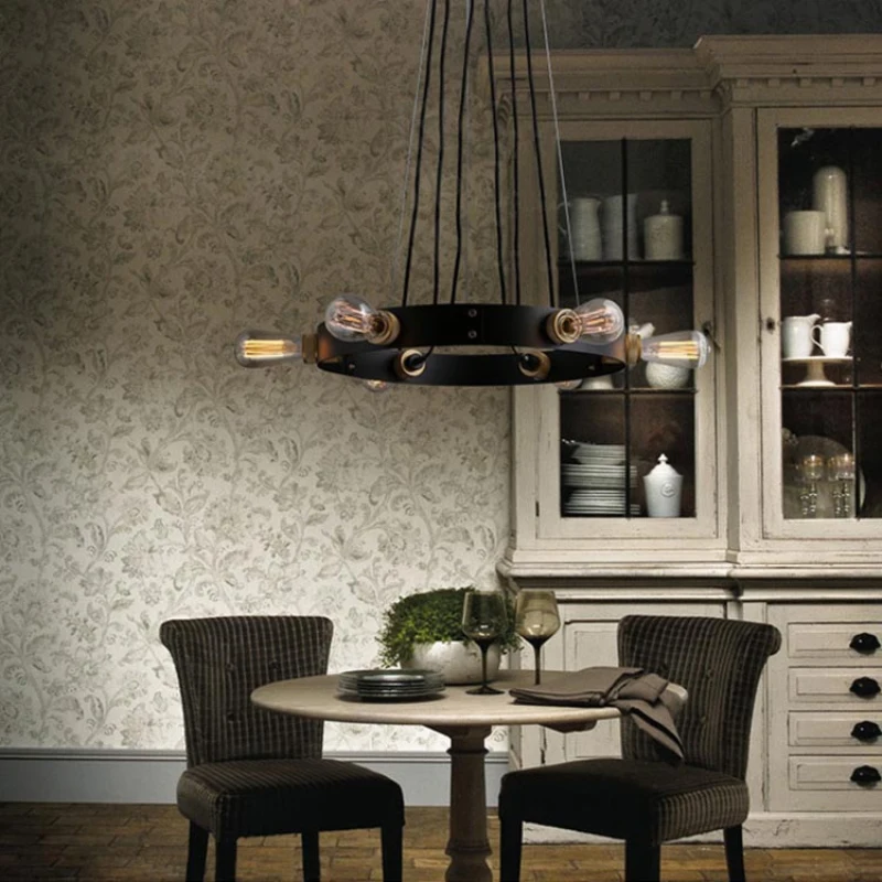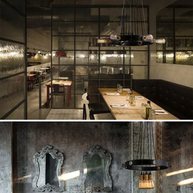 Product Name: Loft Retro Industriële Wind Ijzeren Cirkel Creatieve Kroonluchter 6 Hoofd Edison Gloeilamp Voor Cafe Restaurant Bar Woonkamer Verlichting