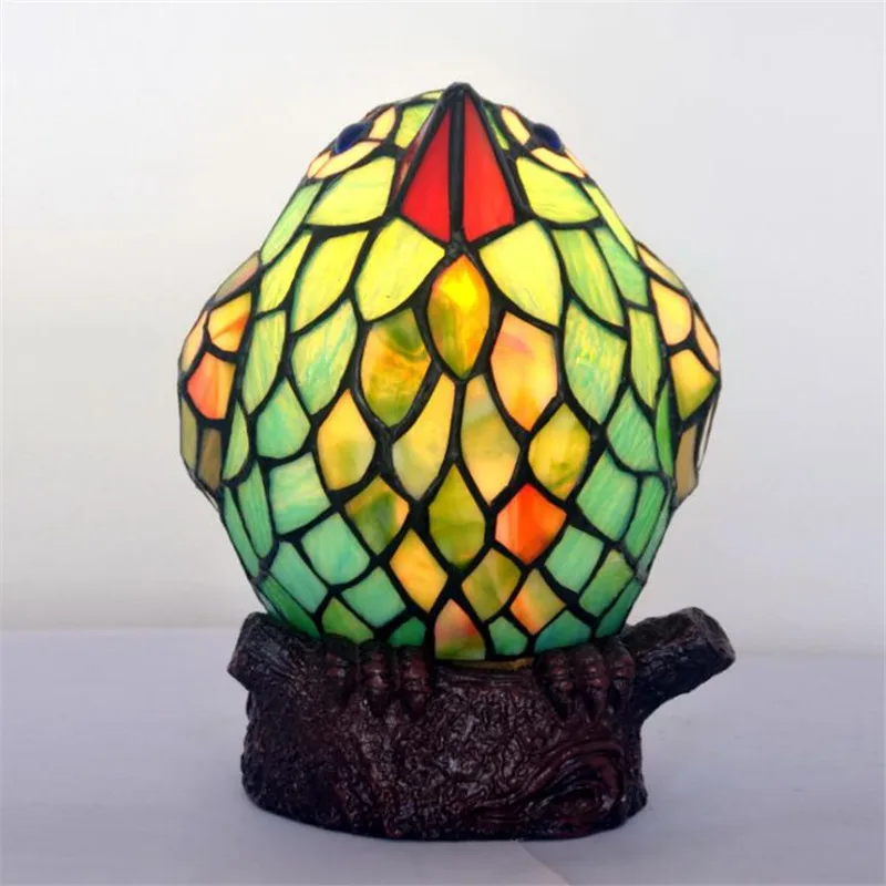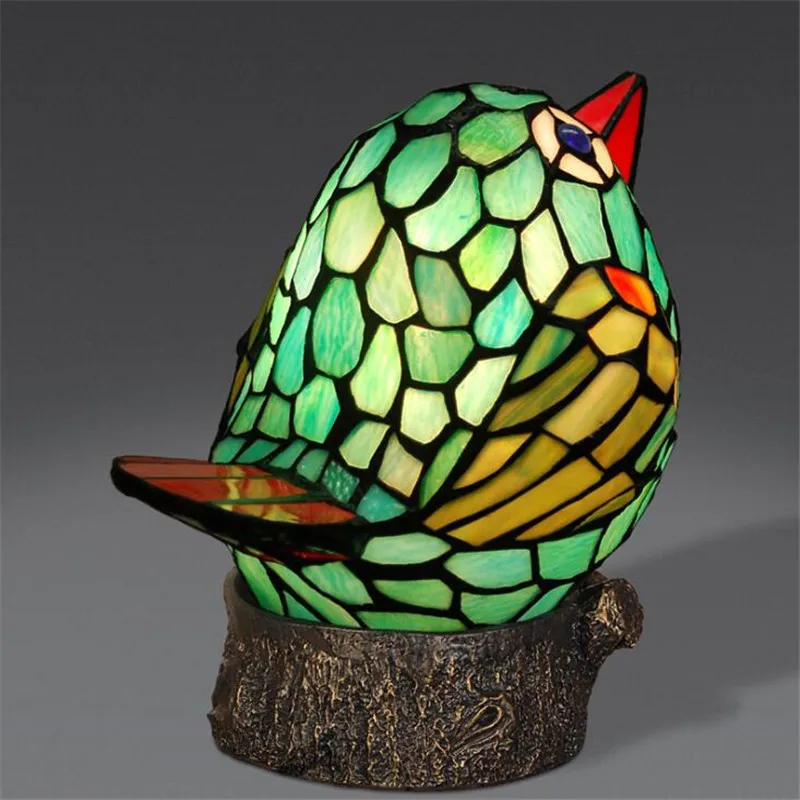 Product Name: Tiffany Creatieve Mooie Groen Glas Vogel Tafellamp Voor Foyer Bed Room Bar Appartement Glas Reading Nachtlampje H 24.5 Cm 1076
