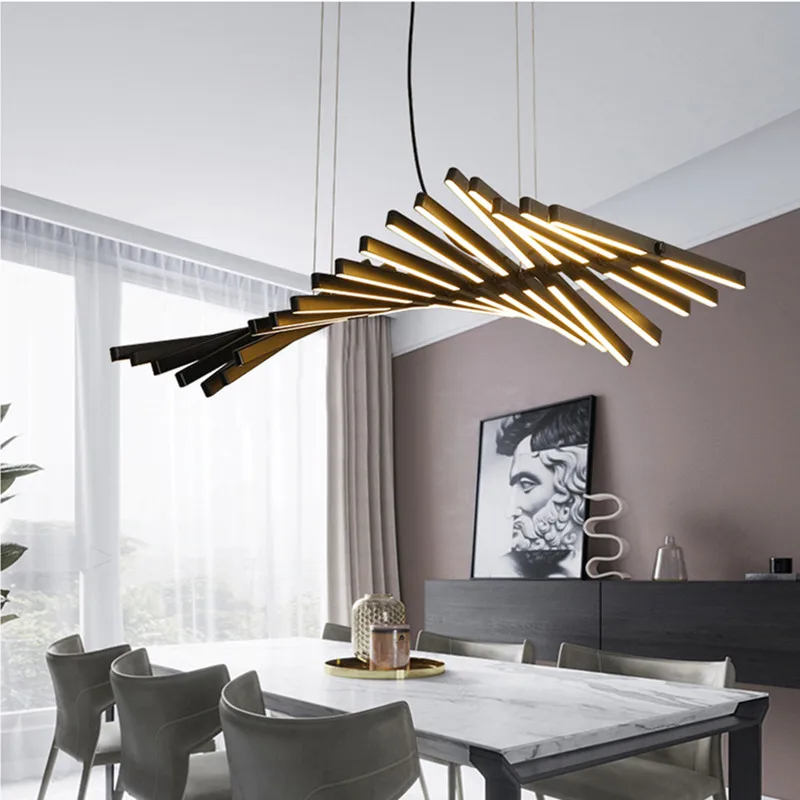 Special Offer Nordic Lange Bar Art Visgraten Changelier Creatieve Draaien Hoofd Zwart/Wit Restaurant Palor Gallery Deco Schorsing Licht Discount (33%OFF) Today!