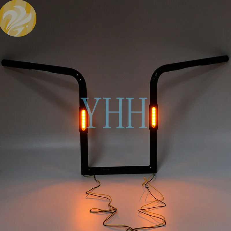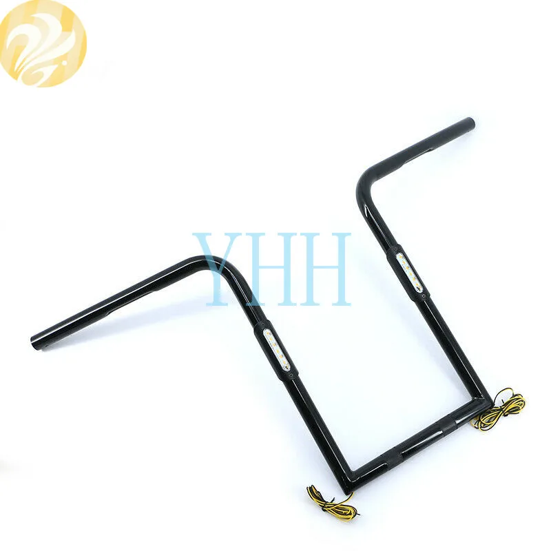 Product Name: Universal Black Motorcycle Handle Bar Slepen Bar 14 "Rise 1'' 25Mm Stuur Met Led Richtingaanwijzer Voor Honda Voor Yamaha